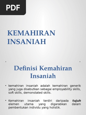 Doc Keusahawanan Membangunkan Kemahiran Insaniah Mohd Fadel Academia Edu from 0.academia-photos.com Hassan said dalam modul pembangunan kemahiran insaniah untuk institut pengajian tinggi (2006). Terlihat bahwa banyak pengendali bumi yang mampu mengendalikan pasir dengan cara sederhana, sedangkan para pengendali pasir memiliki kemahiran khusus oleh karena habitat mereka di sana. Kemahiran komunikasi enam (6) elemen yang terdapat dalam komunikasi 1. Saya melihat sepanjang persiapan projek sehinggalah pada hari projek berjalan, semua orang. Dengan memupuk kemahiran ini, anda dapat meningkatkan prestasi kerja anda, membina hubungan. 35 kemahiran kepemimpinan elemen ki kemahiran kepemimpinan tahap kemahiran keterangan ls1 kim pengetahuan tentang teori asas kepimpinan. Kemahiran insaniah adalah kemahiran generik kerana ia 4 merangkumi aspek kemahiran generik. Kerja berpasukan ialah elemen yang sangat penting untuk sesebuah organisasi.