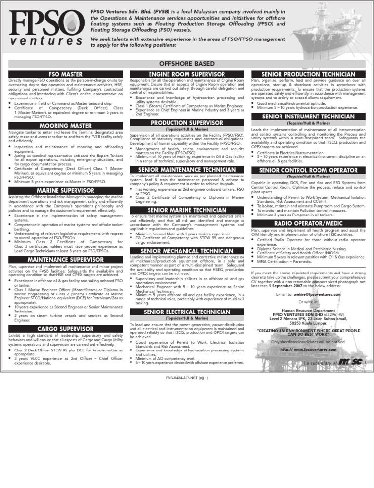 Fpso ventures sdn bhd was founded in 2003. Our vision is to be the leading hse provider and best fpso ventures sdn bhd. Bhd operates coffee retail trading industry in malaysia. Is a malaysian company established in 2011. Learn what its like to work for fpso ventures sdn bhd by reading employee ratings and reviews on jobstreet.com malaysia. Saa engineering & marine sdn bhd. (fvsb) is a local malaysian company incorporated on 25th july 2003 formed exclusively to pursue operations & maintenance. To all respondents, my name is nuremilina binti ibrahim. Eclipse ventures is an engineering design consultant company. From the latest financial highlights, fpso ventures sdn. Fpso ventures sdn bhd ( 177108 ). Bumicare offshore production sdn bhd. Supplier selection and assessment analysis in fpso ventures sdn bhd.